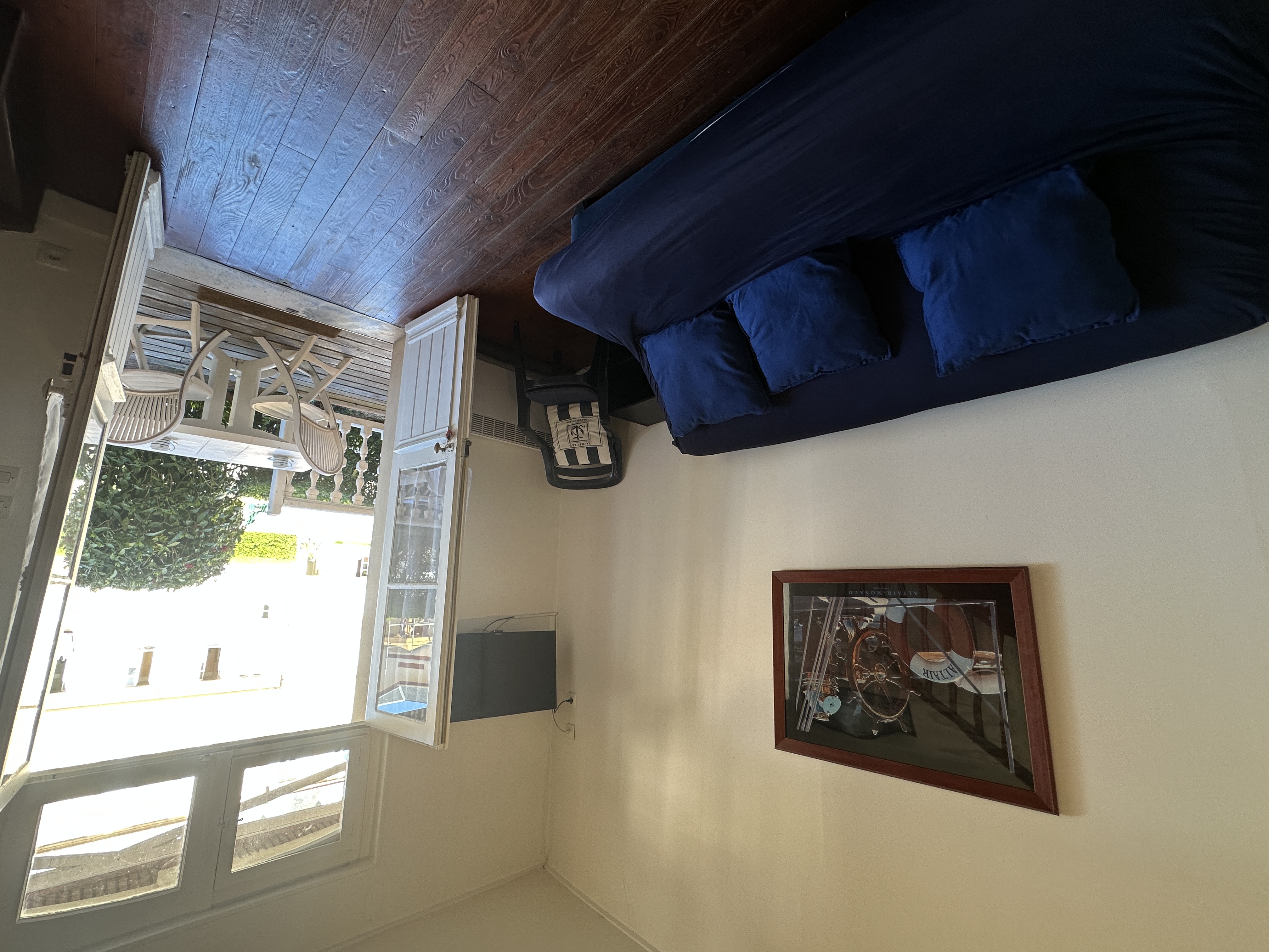 -Une première chambre avec lit double 140x190, donnant sur une terrasse privative avec vue sur le port et aperçu mer