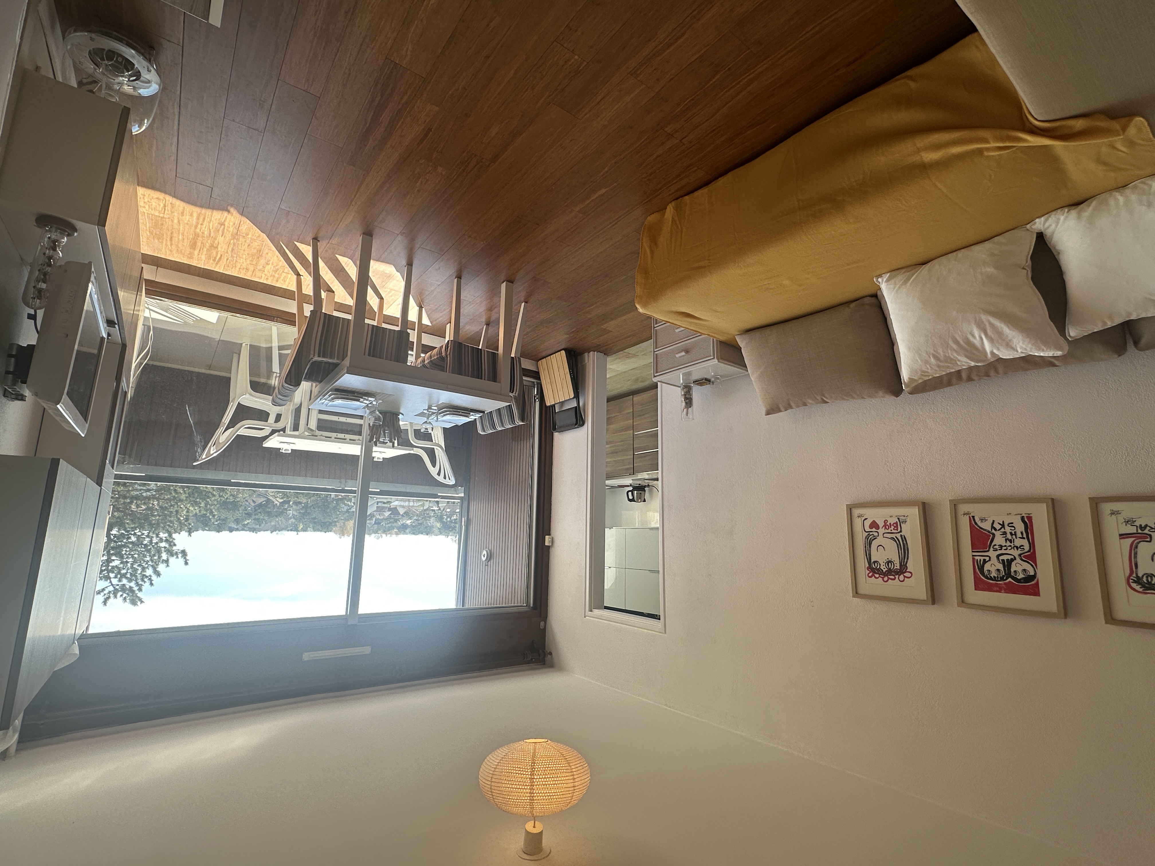 Séjour / salon : canapé clic-clac (140x200), TV écran plat, avec accès direct au balcon vue mer