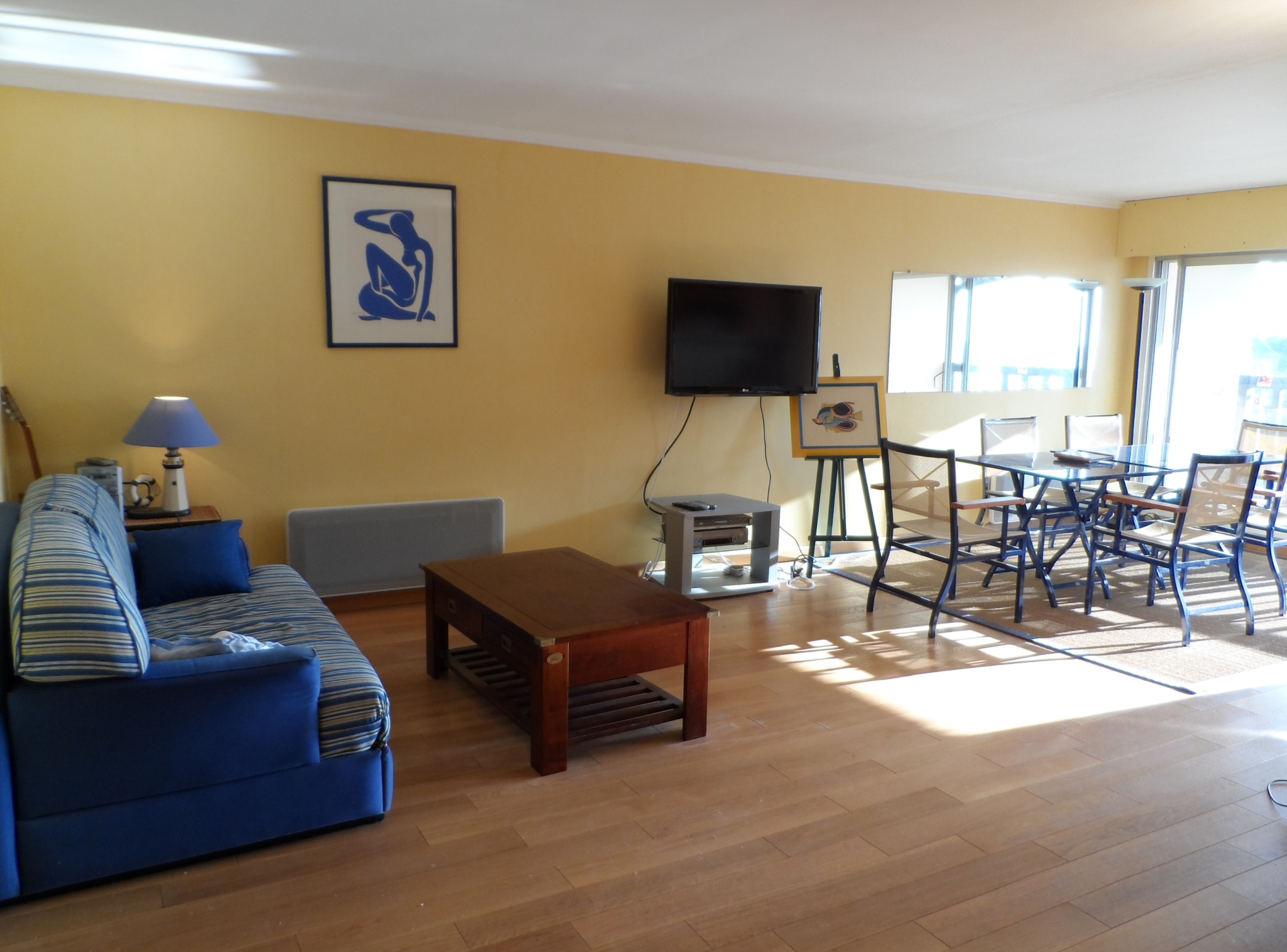 Au 4ème étage, avec ascenseur, appartement traversant, DEUX BALCONS EST ET OUEST proposant : entrée avec placards de rangement, séjour/salon (TV écran plat, lecteur DVD, un canapé convertible 2 places 140x190) exposé Ouest donnant sur un balcon avec une vue mer, cuisine indépendante (lave-vaisselle, lave-linge, four traditionnel,four à micro-ondes,réfrigérateur/ congélateur), une 1ere chambre (2 lits superposés 90x190 et 1 lit gigogne 90x190) exposée Est donnant sur un balcon vue sur l'estuaire de la Dives. 2eme chambre (1 lit 2 personnes 160X200), salle de bains (baignoire, sèche serviette) et WC indépendant. Un garage privatif en sous-sol.