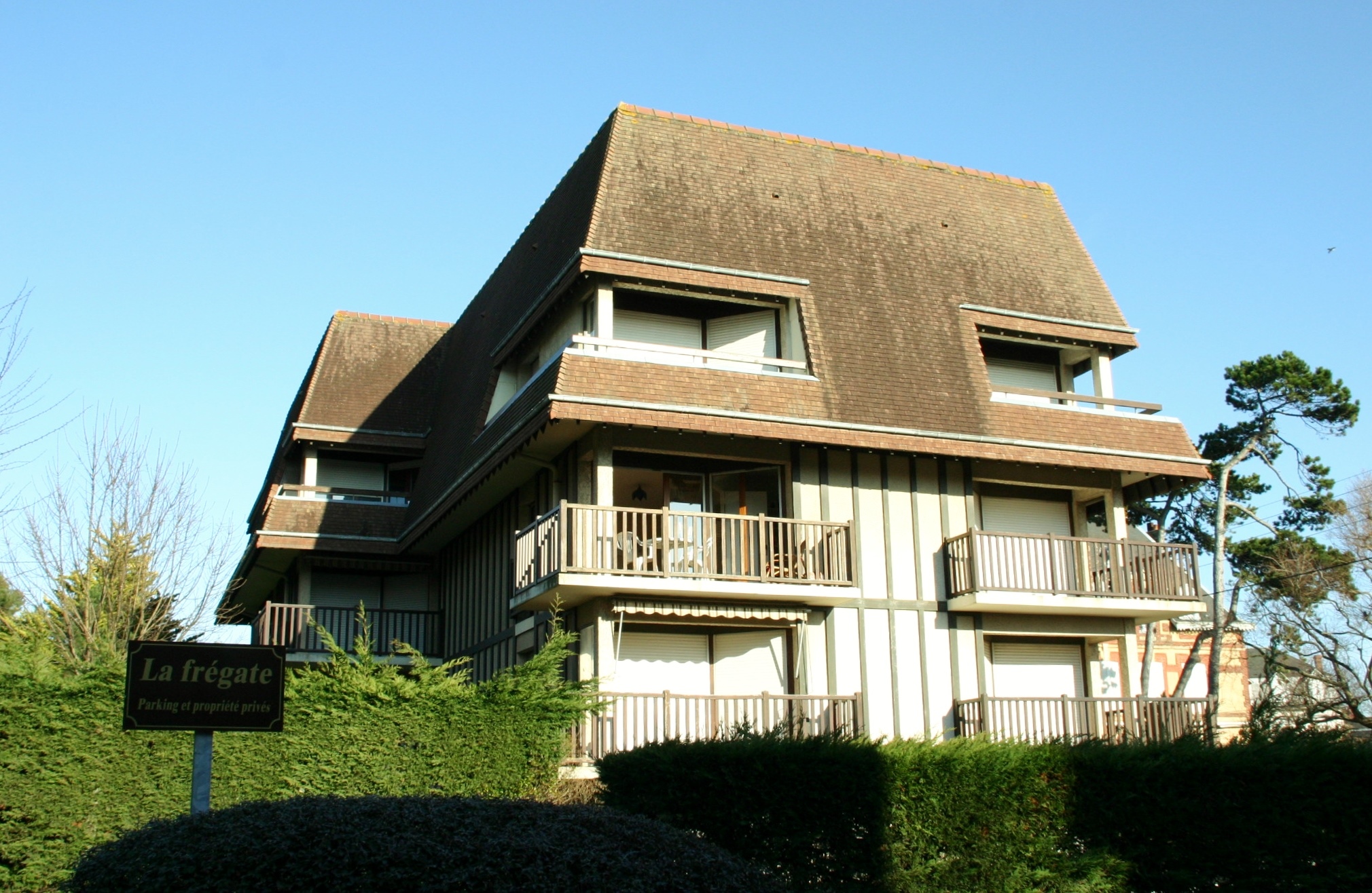 En centre-ville et à 2 pas de la plage, dans une résidence de style normand, grand studio d'une surface de 30 m² environ pour 4 personne au 3ème étage avec ascenseur donnant sur un balcon exposé nord-ouest. L'appartement comprend : entrée avec un placard/penderie, salle d'eau (douche) avec WC, pièce principale (avec clic-clac 160x200 et BZ 140x190, TV écran plat) donnant sur un grand balcon, cuisine indépendante ( lave-vaisselle, 2 plaques à induction,four à micro-ondes, four électrique) donnant également sur le balcon. Une place de parking privative en sous-sol. Les animaux de compagnie ne sont pas acceptés dans cette location.